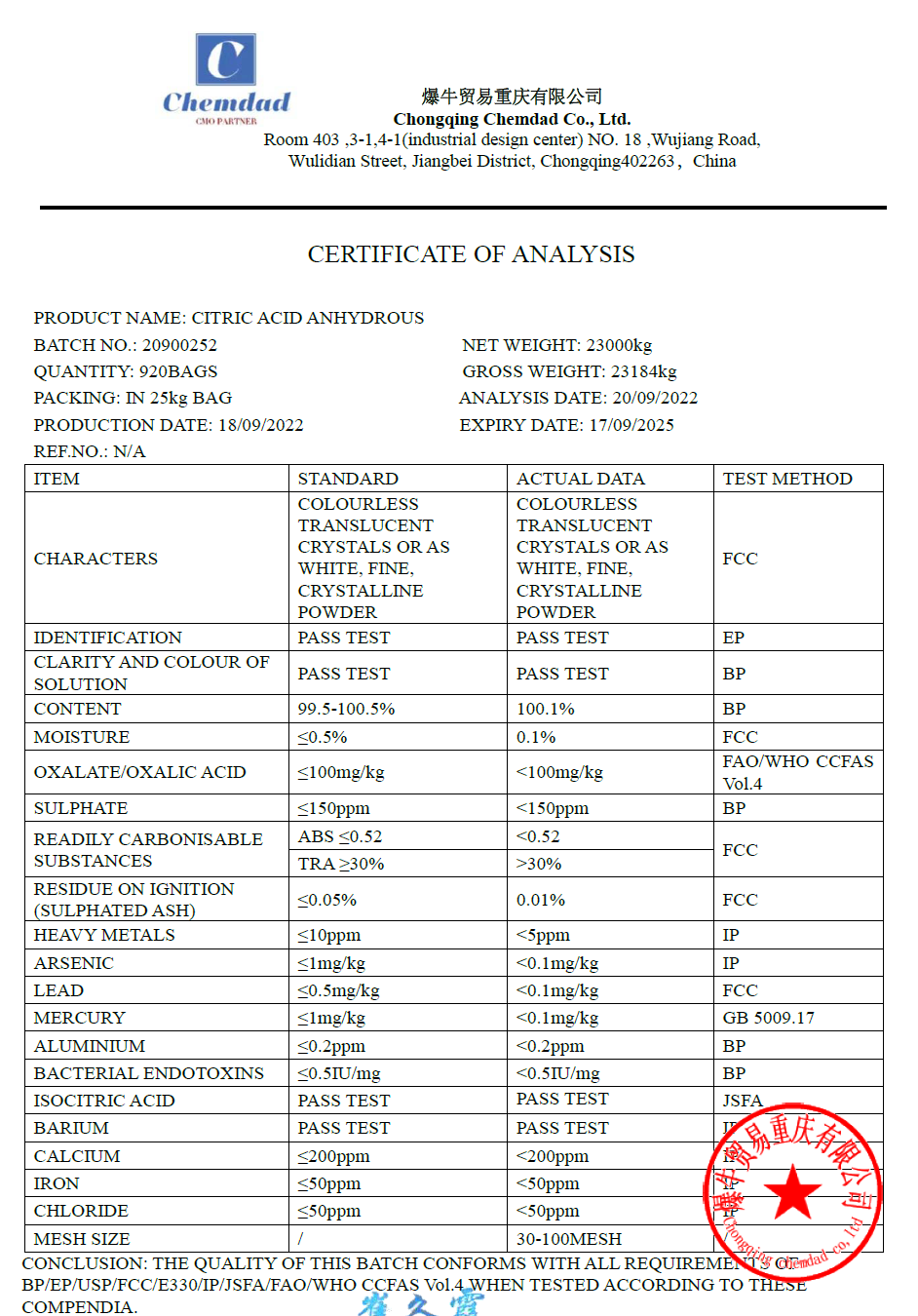 Main application: Mainly used as acid condiment, flavoring agent, preservative and pharmaceutical excipients in food & beverage and pharmaceutical industries. It is also used as an antioxidant, plasticizer and detergent builder in chemical, cosmetics and detergent industries;